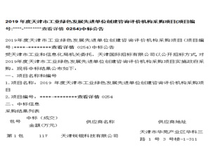 2019年度天津市工業(yè)綠色發(fā)展先進單位創(chuàng)建咨詢評價機構